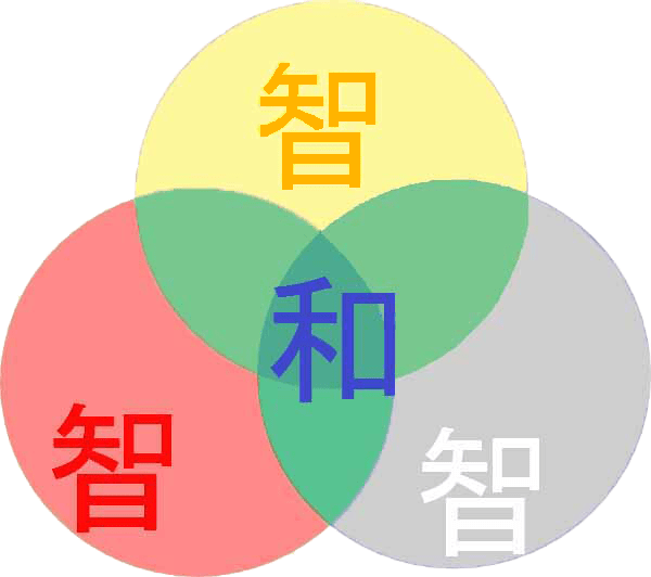 In Three Wisdom logo, the yellow circle represents Japanese wisdom, the red circle represents Navajo’s wisdom, and the white circle represents Caucasian’s wisdom. The green part represents peace. This is the place where each wisdom combines, the place where acknowledging and respecting one another.