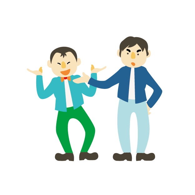 As a Manzai-unit, the performers want to do their jobs at equal percentage as in 50%/50%. In the reality, however, there is no such well-balanced units. In the most popular Manzai units, one performer seemingly works more than the other at the balance of 80%/ 20%, 90%/10%, or even 100%/0%.