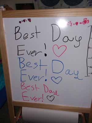 My daughter was so happy for her new hair length. She wrote down “Best Day Ever!” on her little white board.