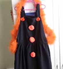 I started making a Halloween dress for my daughter in the morning. I needed to make a mad dash to the local craft store. There I bought some decorative items such as Halloween buttons and orange pompoms, and a pair of snap buttons.